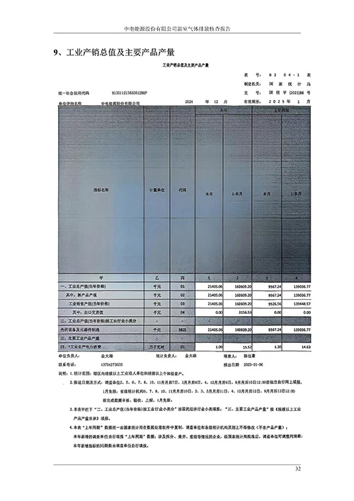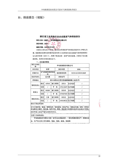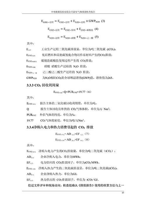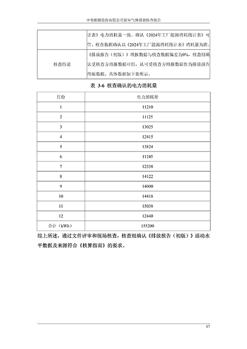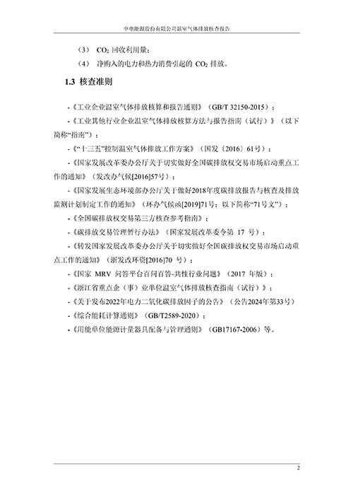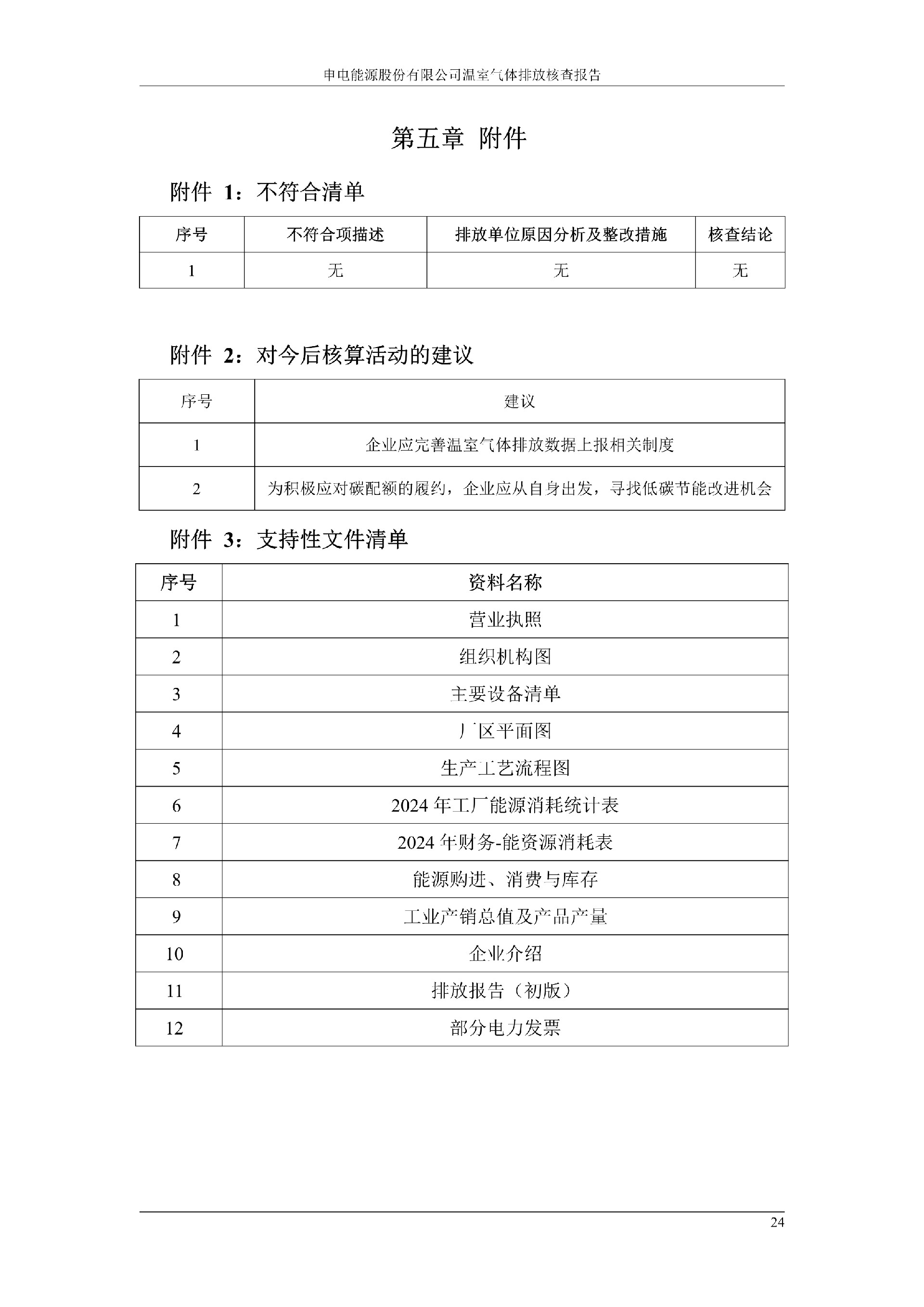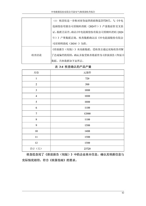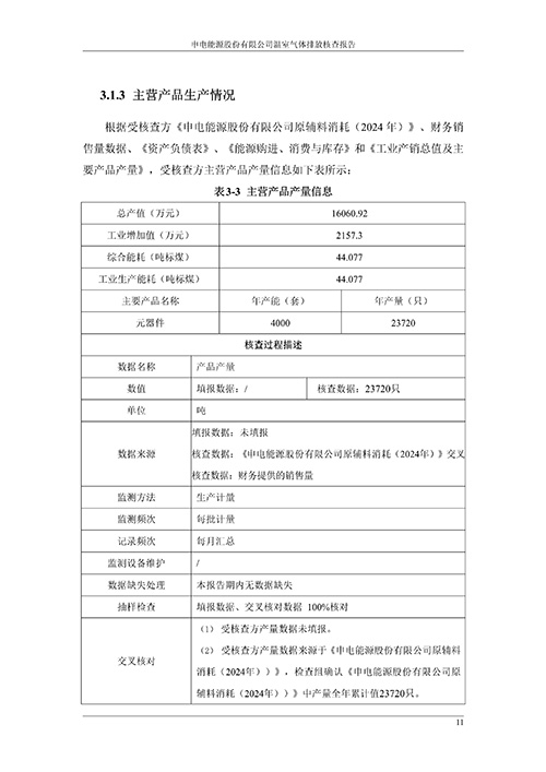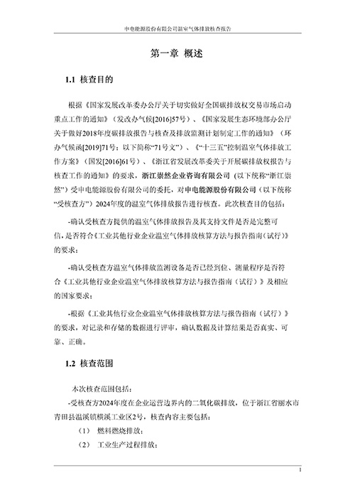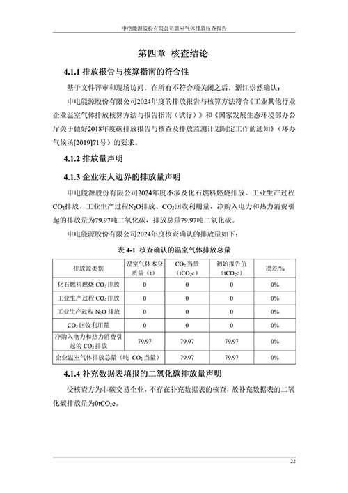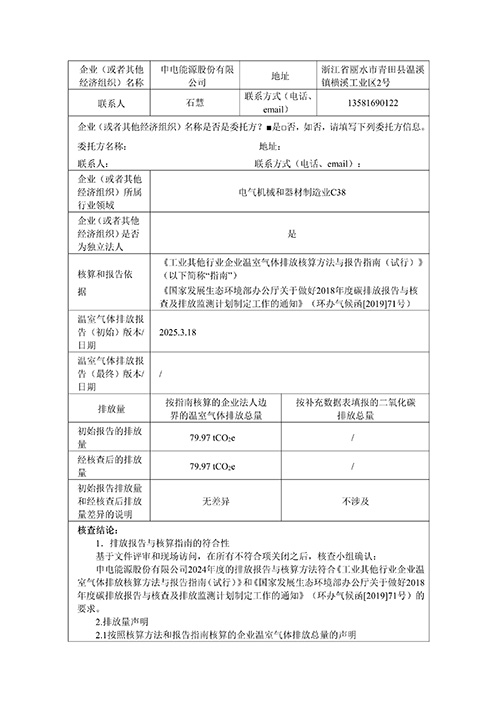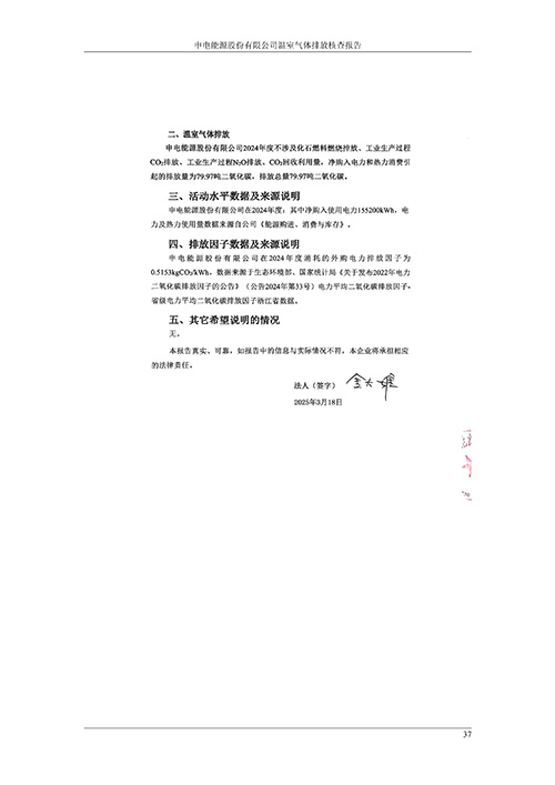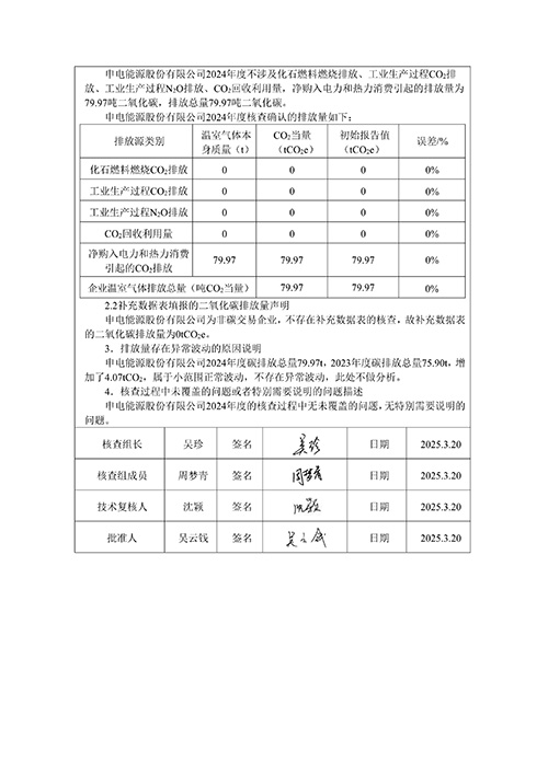 申电能源股份有限公司2024 年度温室气体排放核查报告